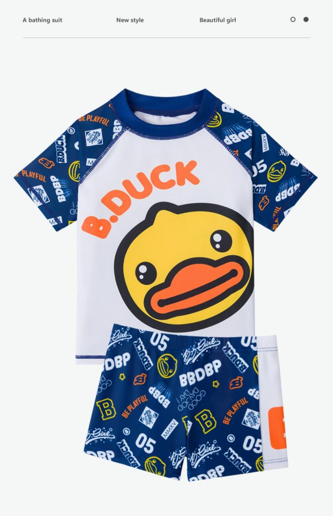 B.Duck 2025 Boys' Swimwear Set - Cartoon Print Quick-Dry Swim Outfit for Training & Hot Spring (UPF50+)