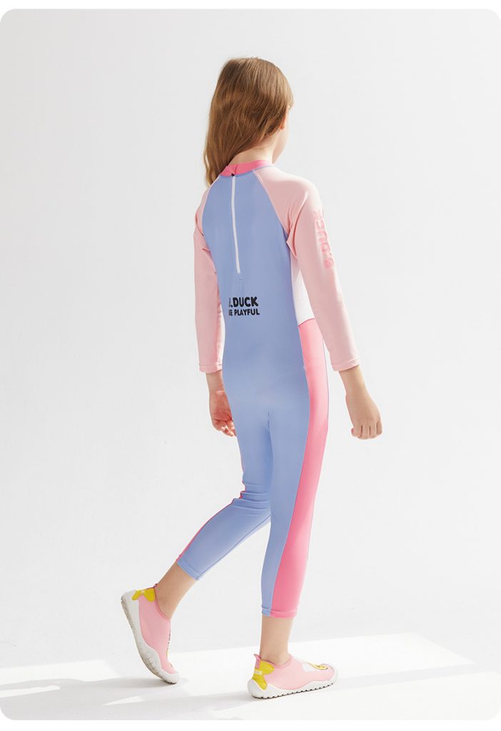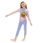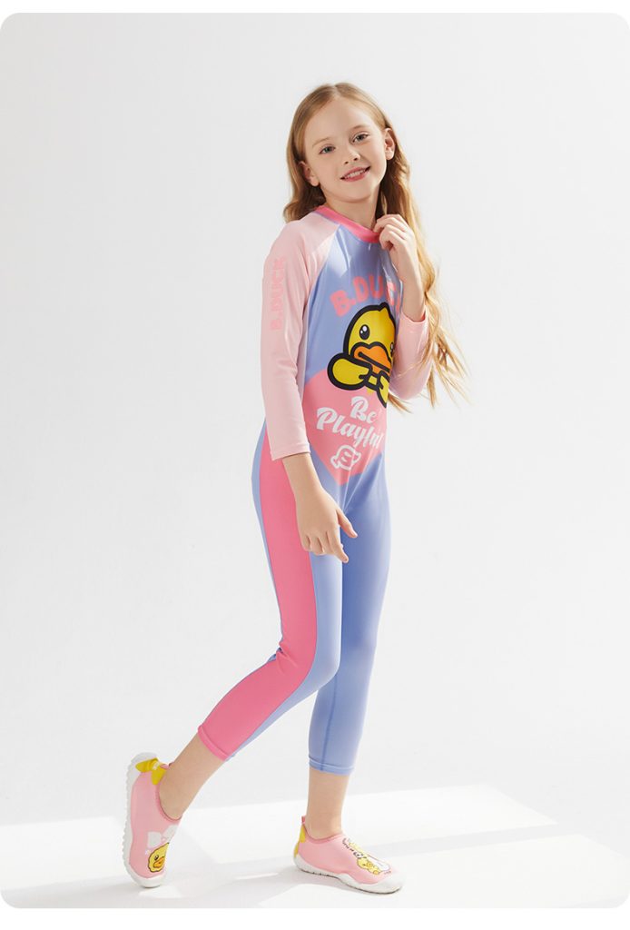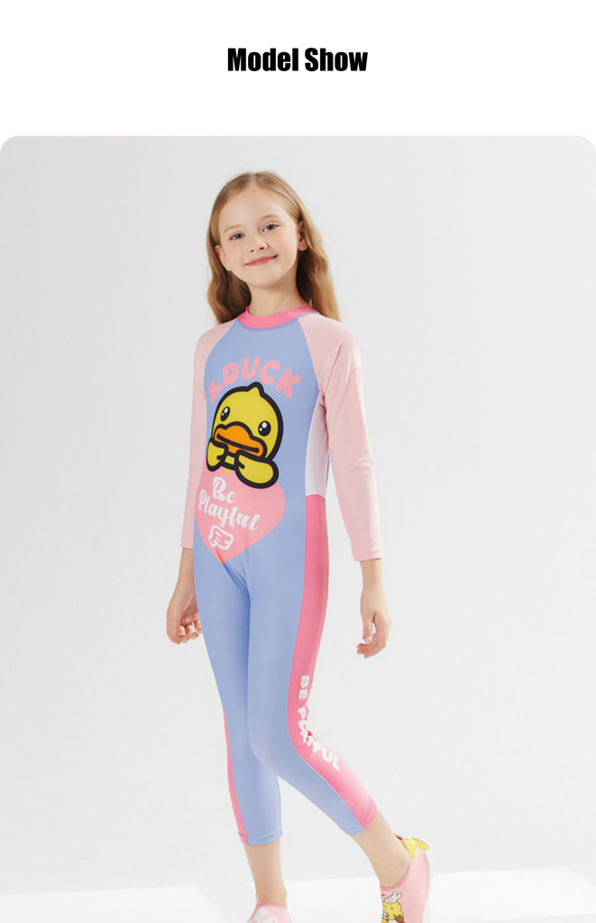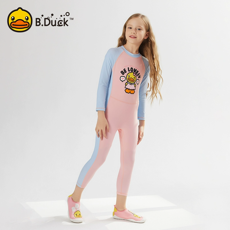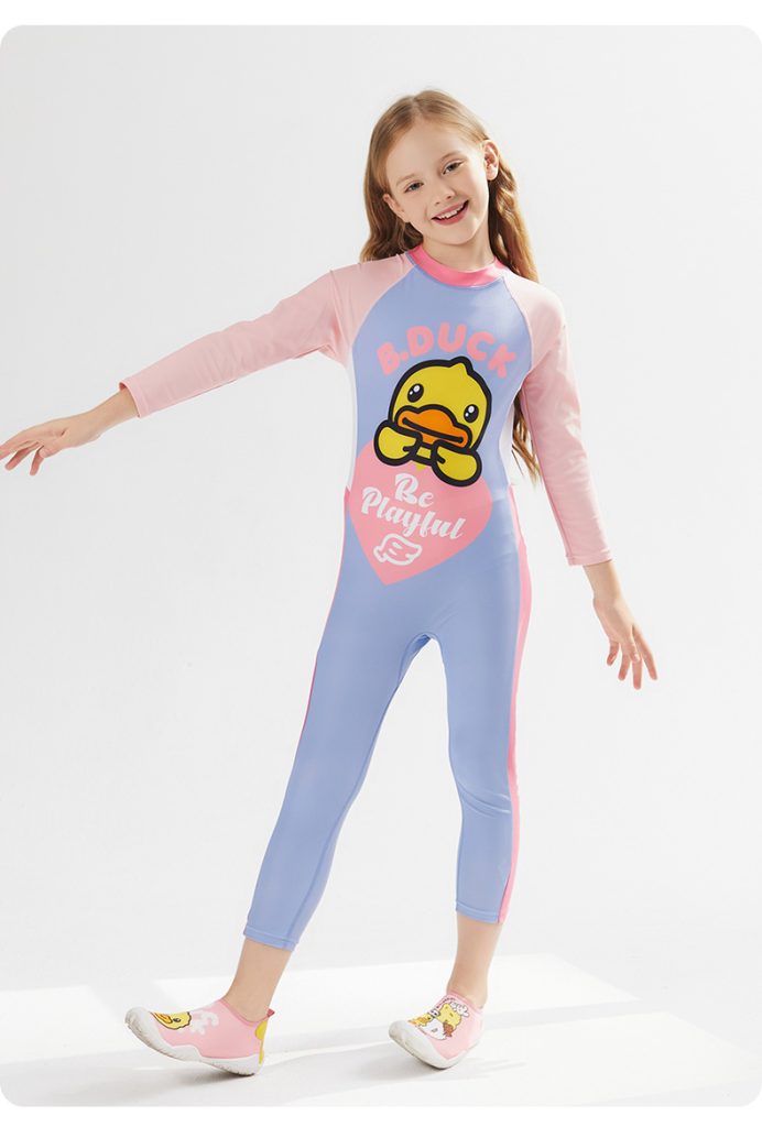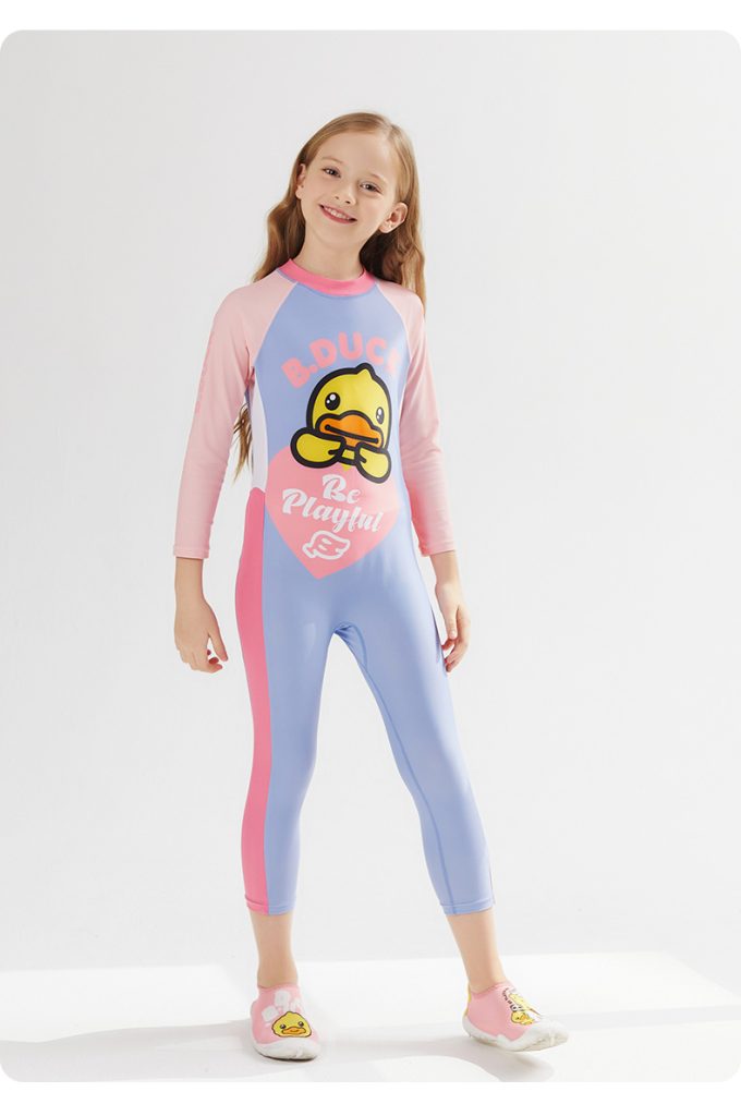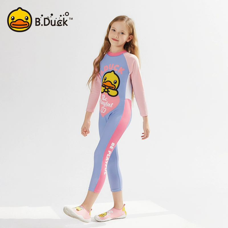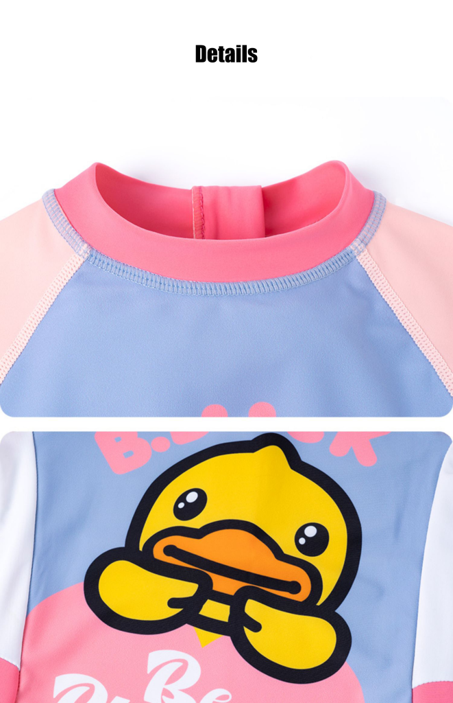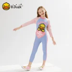 B.Duck children's two-piece swimsuit with skirt and long sleeves, new cute cartoon style for girls and toddlers, designed for training purposes
