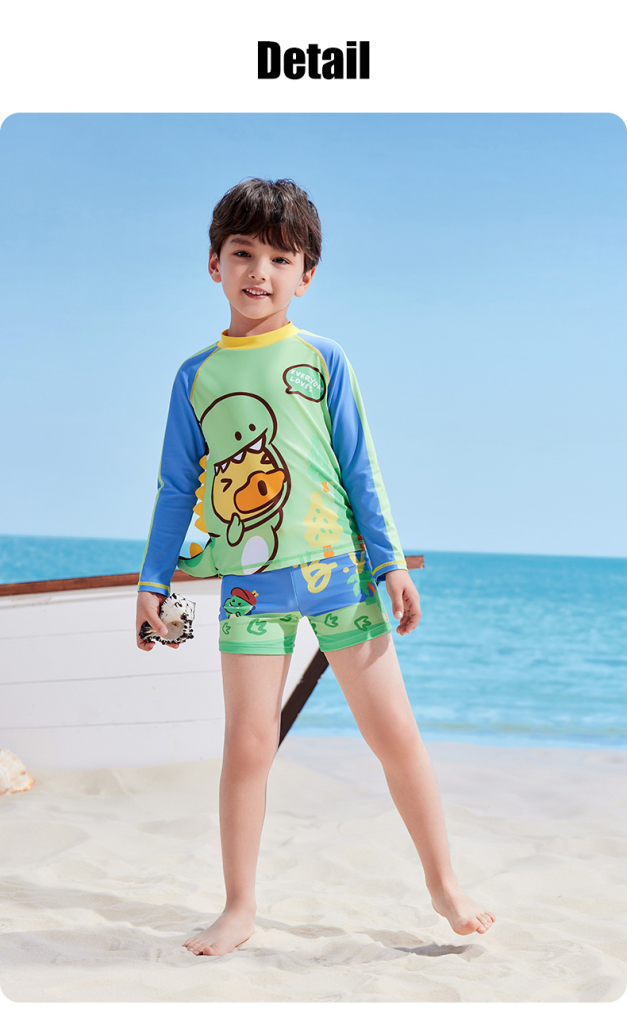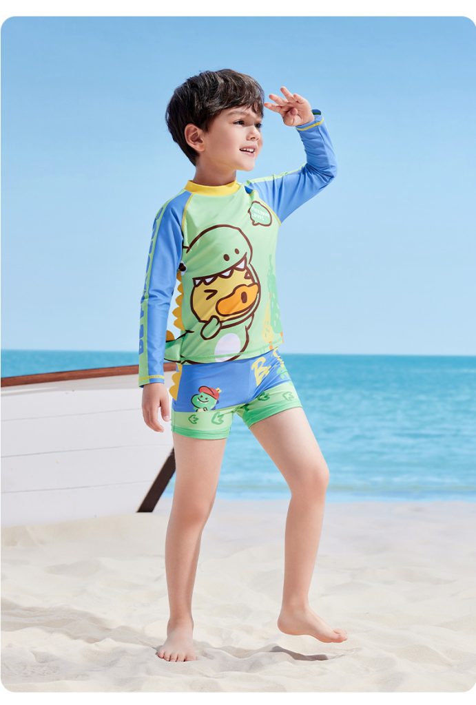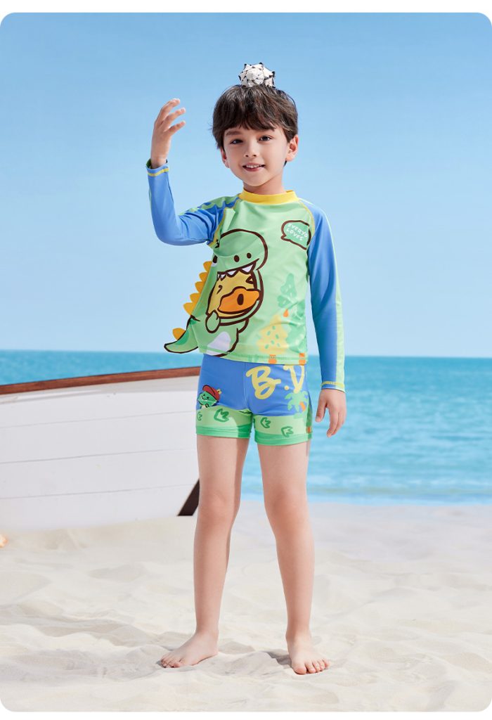 B.Duck Boys' Swimsuit Set – Long-Sleeve UV Protection Separated Swimwear (Top & Bottom), Cute Design for Teenagers & Older Kids