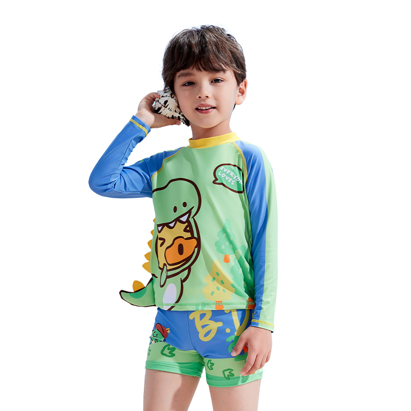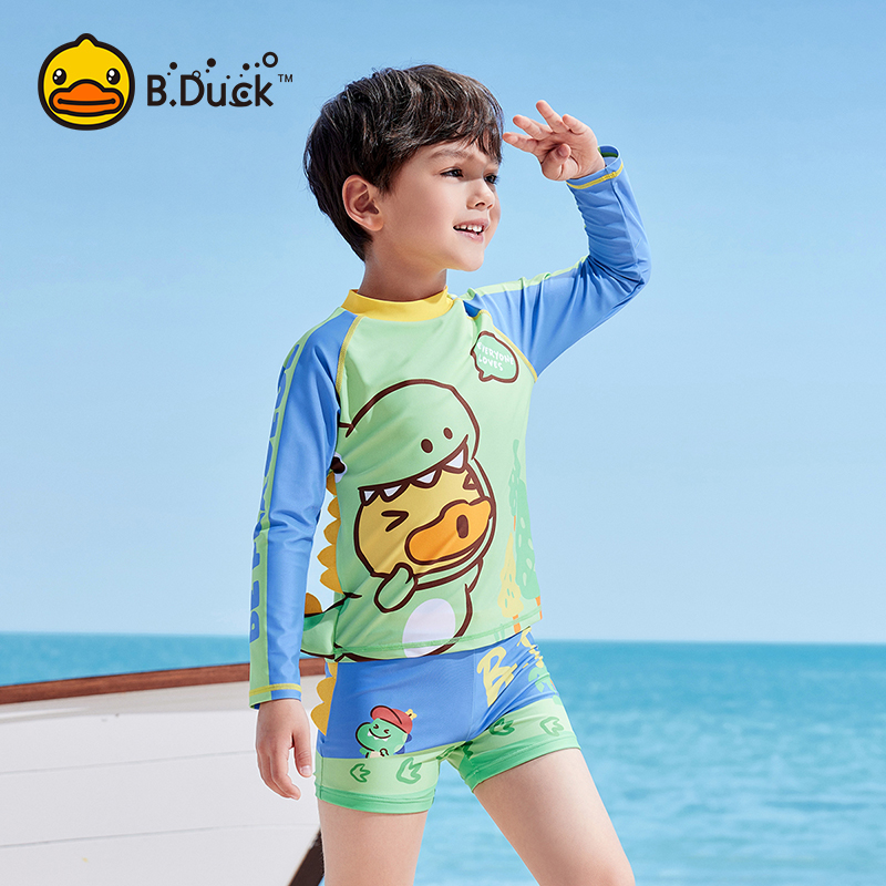 B.Duck Boys' Swimsuit Set – Long-Sleeve UV Protection Separated Swimwear (Top & Bottom), Cute Design for Teenagers & Older Kids