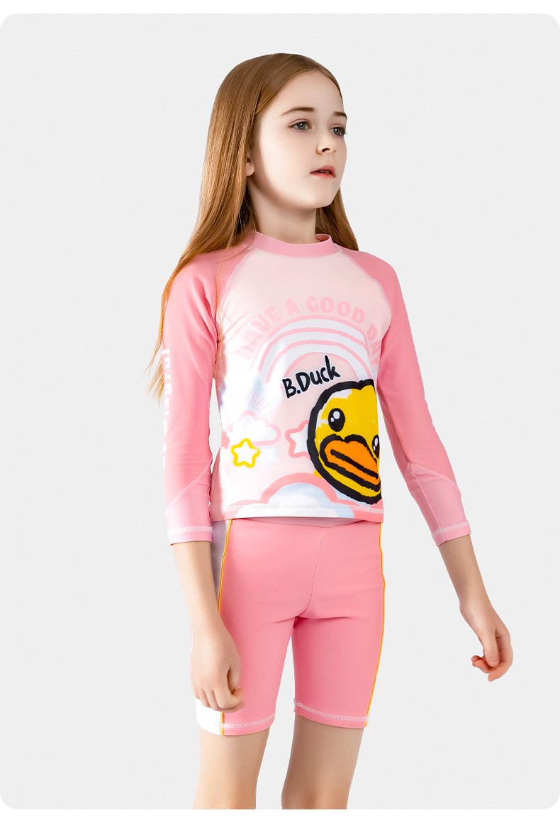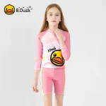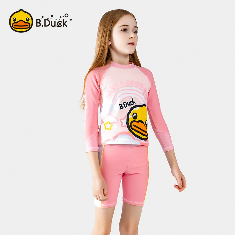 ‌B.Duck Girls' 2-Piece Swim Set - Long Sleeve Rash Guard & Swim Shorts (UPF 50+/Quick-Dry)‌