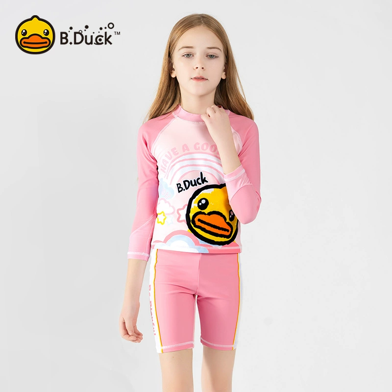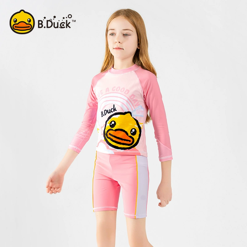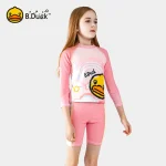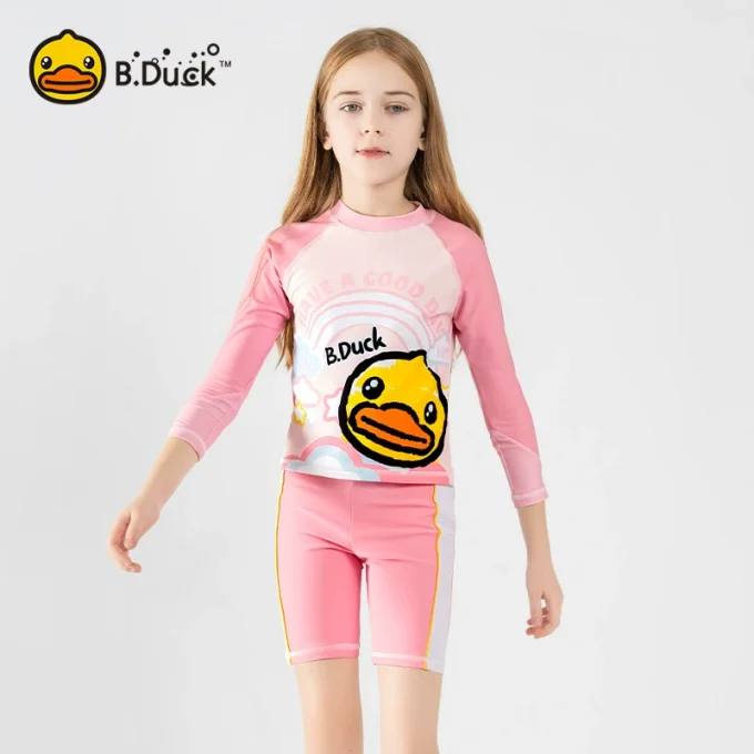 ‌B.Duck Girls’ 2-Piece Swim Set – Long Sleeve Rash Guard & Swim Shorts (UPF 50+/Quick-Dry)‌