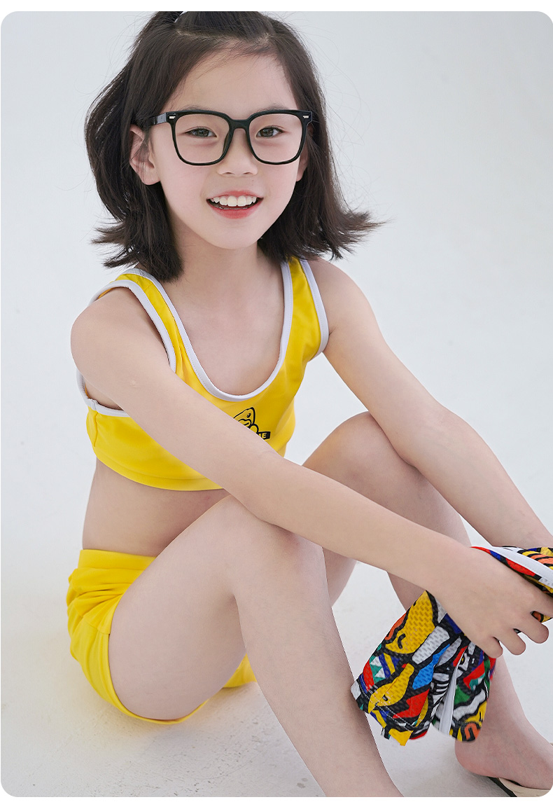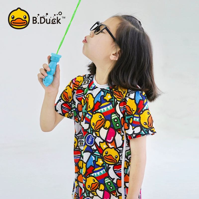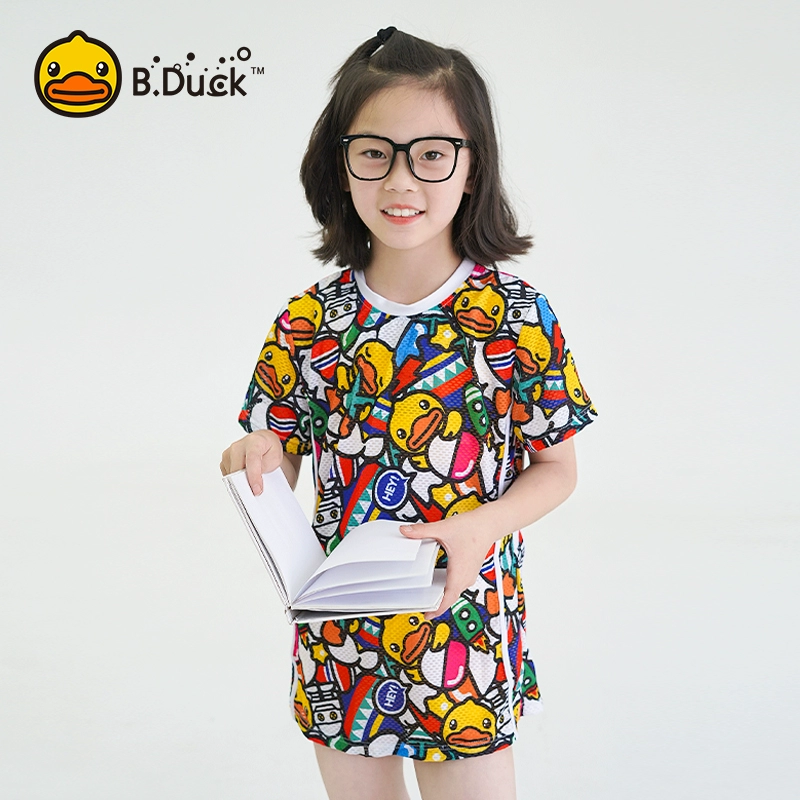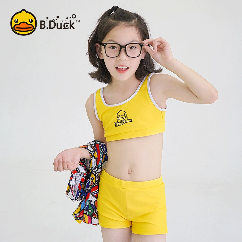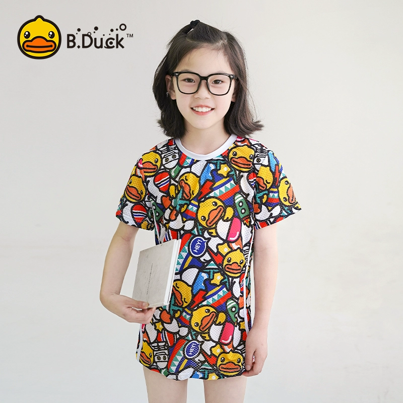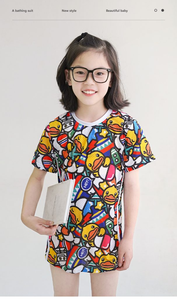 B.Duck Girls' One-Piece Flat-Cut Swimsuit – New Cute & Elegant Hot Spring/Racing Swimwear for Older Kids