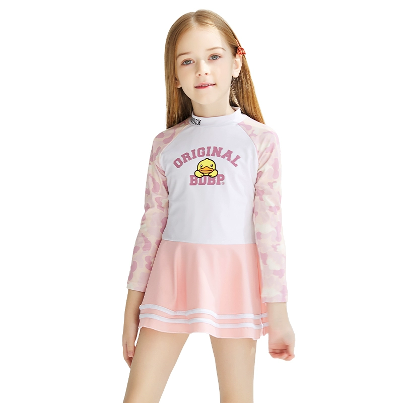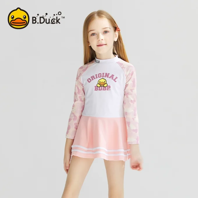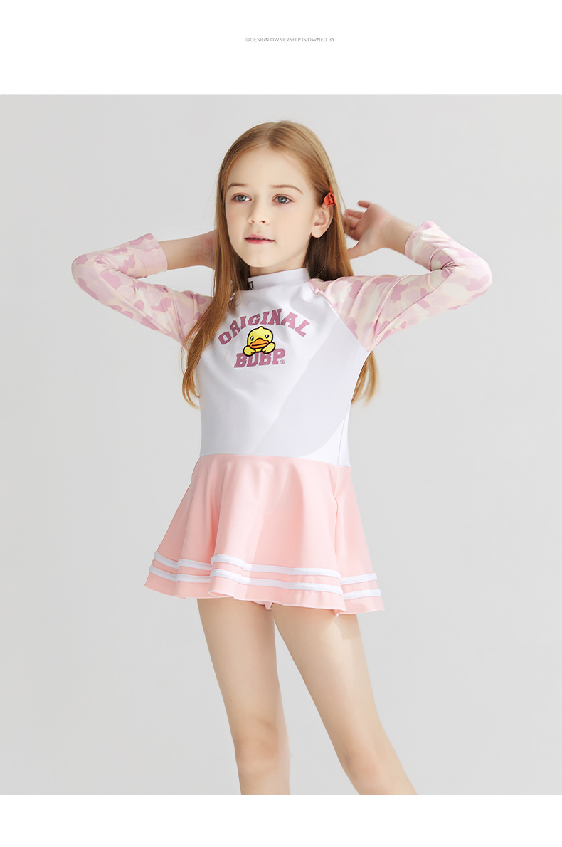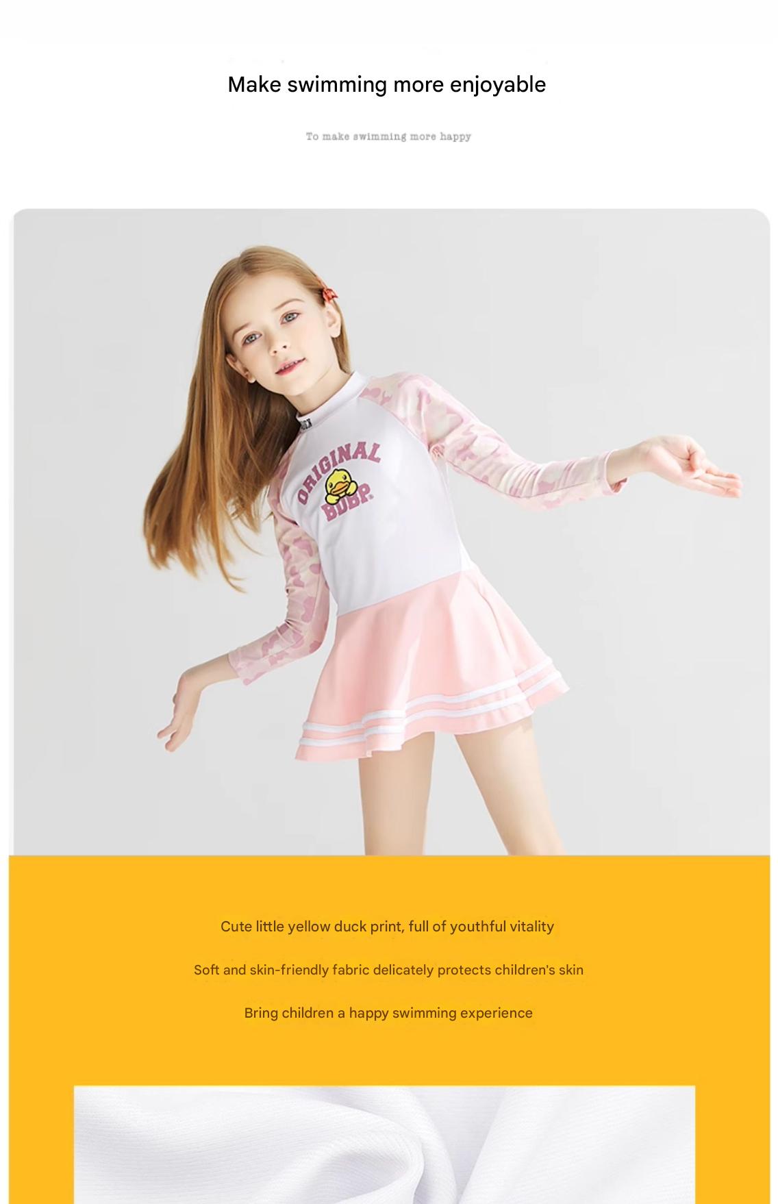 | style: No selection | B.Duck Girls' Long-Sleeve One-Piece Swimsuit Dress – New Quick-Dry Fashionable Princess Vacation Swimwear |