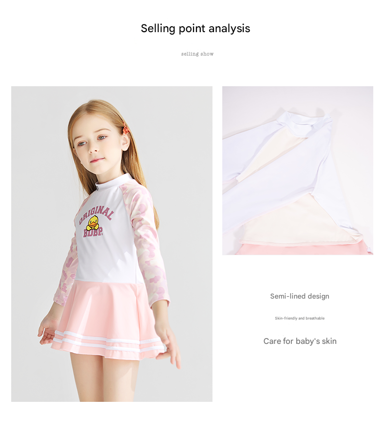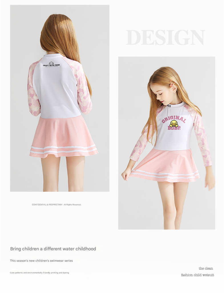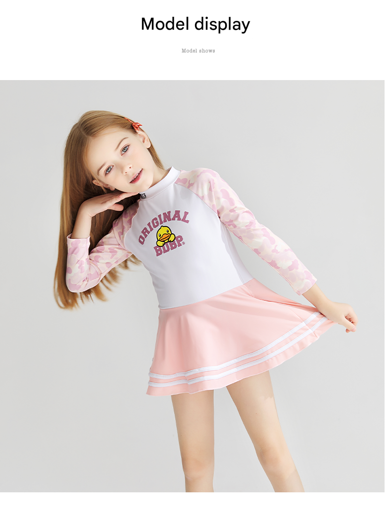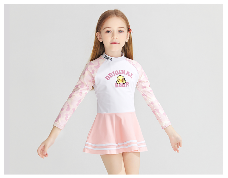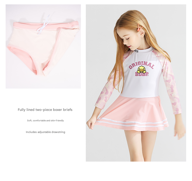 | style: No selection | B.Duck Girls' Long-Sleeve One-Piece Swimsuit Dress – New Quick-Dry Fashionable Princess Vacation Swimwear |