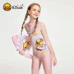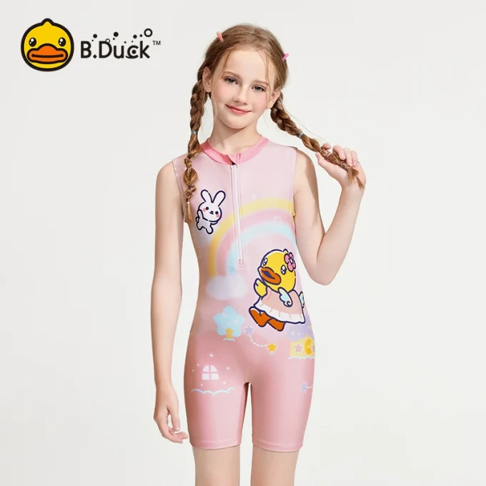 B.Duck Girls’ One-Piece Flat-Cut Swimsuit – New Cute & Elegant Hot Spring/Racing Swimwear for Older Kids