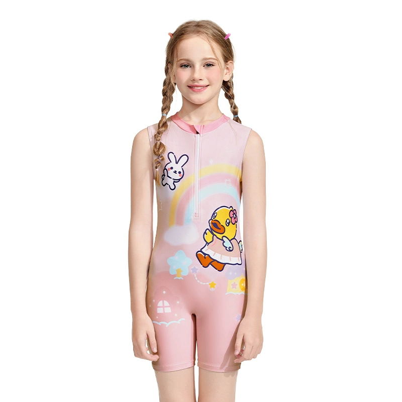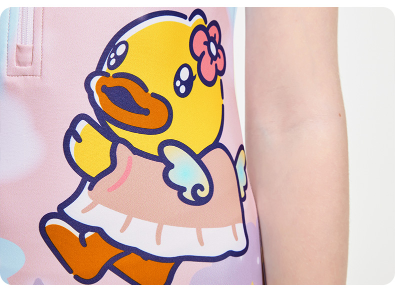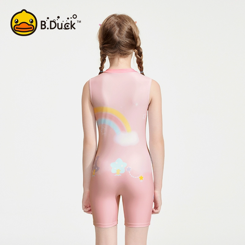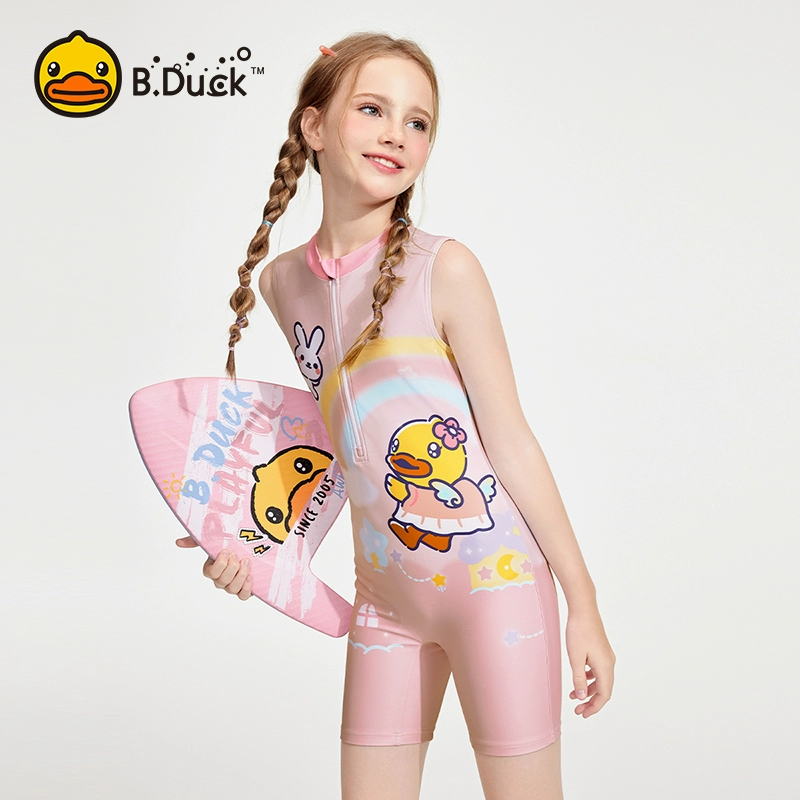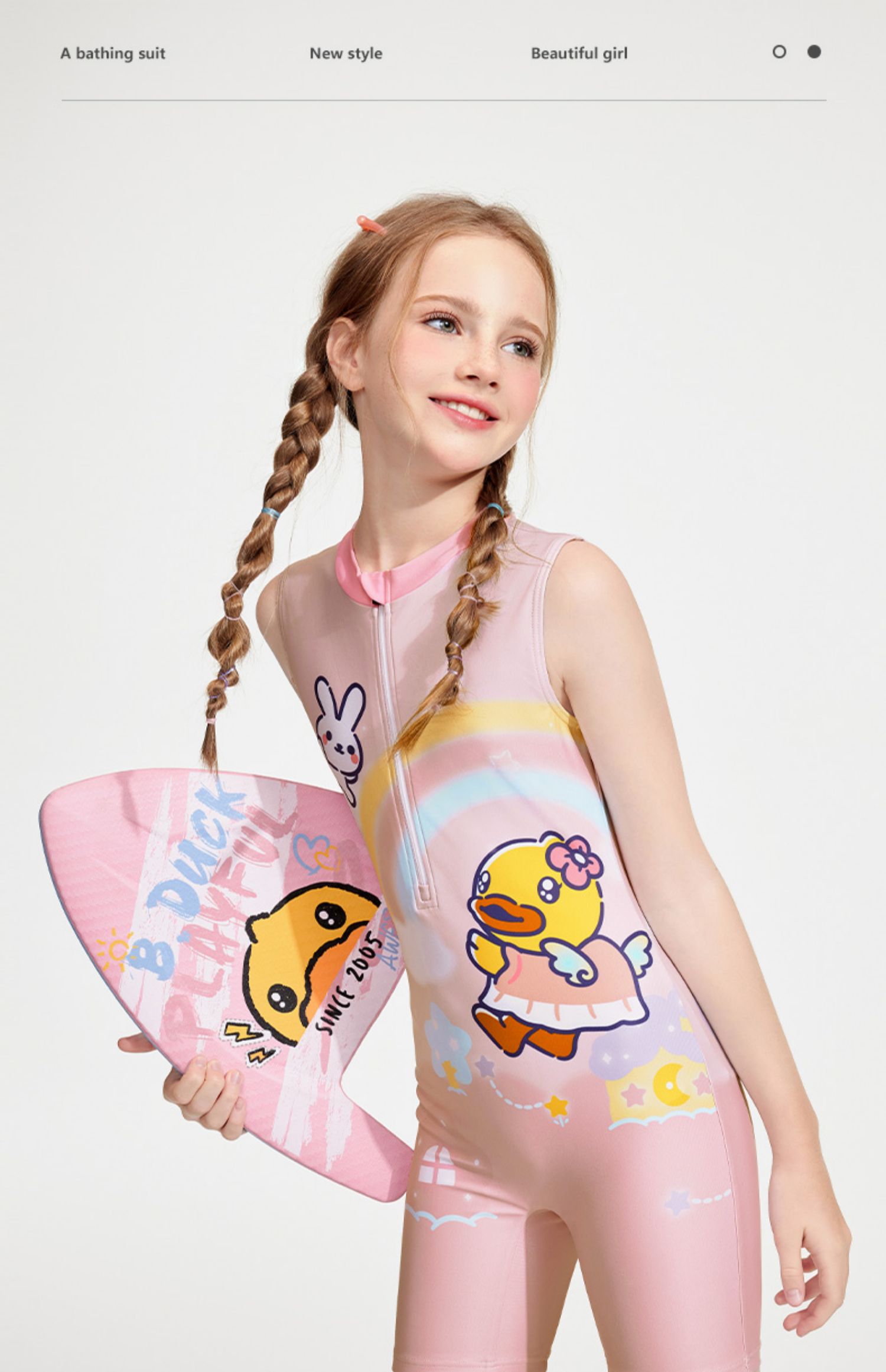 B.Duck Girls' One-Piece Flat-Cut Swimsuit – New Cute & Elegant Hot Spring/Racing Swimwear for Older Kids