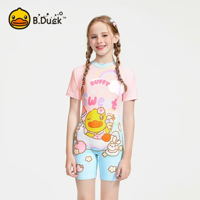 | style: No selection | B.Duck Girls' One-Piece Swimsuit – Flat-Cut Quick-Dry Cute Princess Style Conservative Swimwear for Vacation (New Design) |