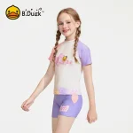 B.Duck girls' long-sleeve two-piece swimsuit with skirt (beach & sun protection for toddlers)