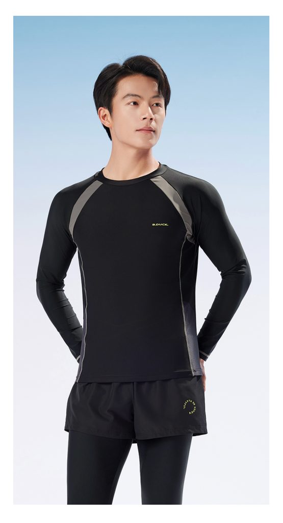 B.Duck Men's Summer Swimwear Set 2025: Long-Sleeve Rash Guard & Pants, UPF50+ Sun Protection for Diving & Surfing