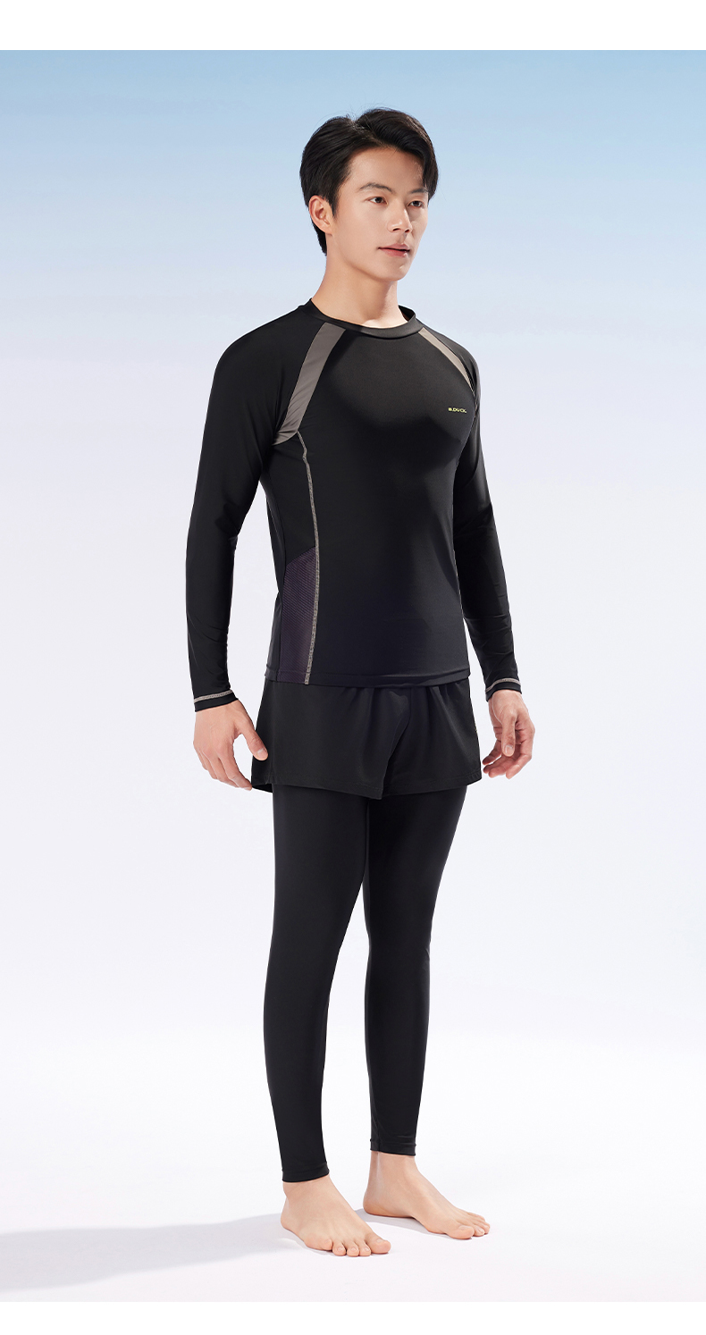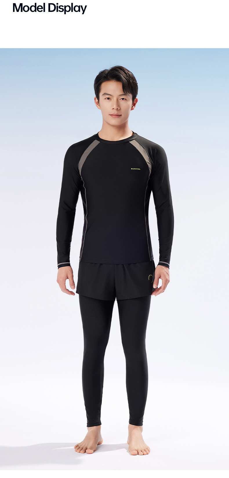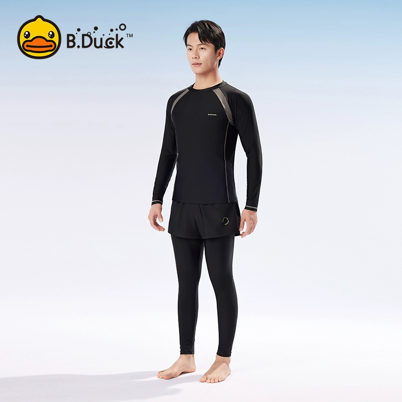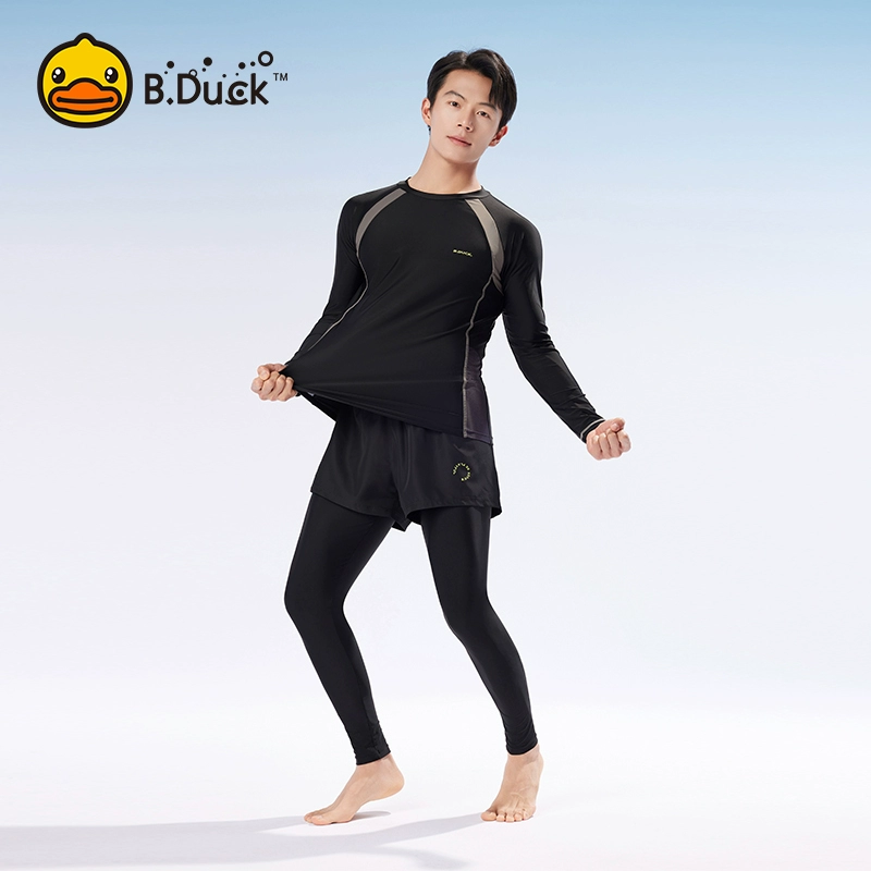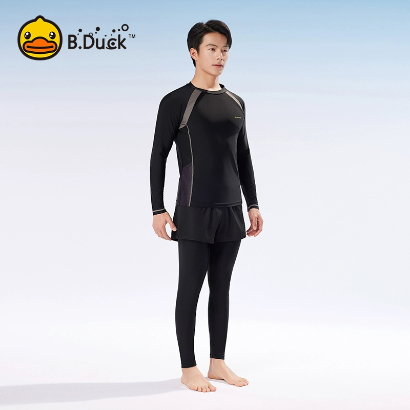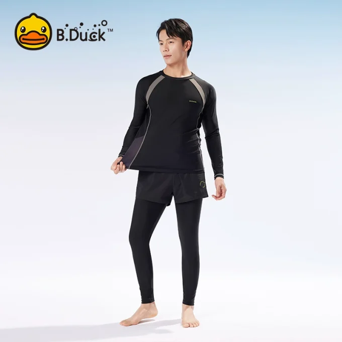 B.Duck Men's Summer Swimwear Set 2025: Long-Sleeve Rash Guard & Pants, UPF50+ Sun Protection for Diving & Surfing