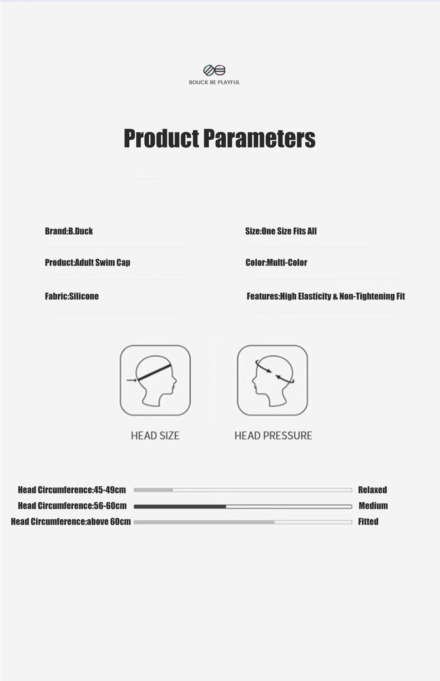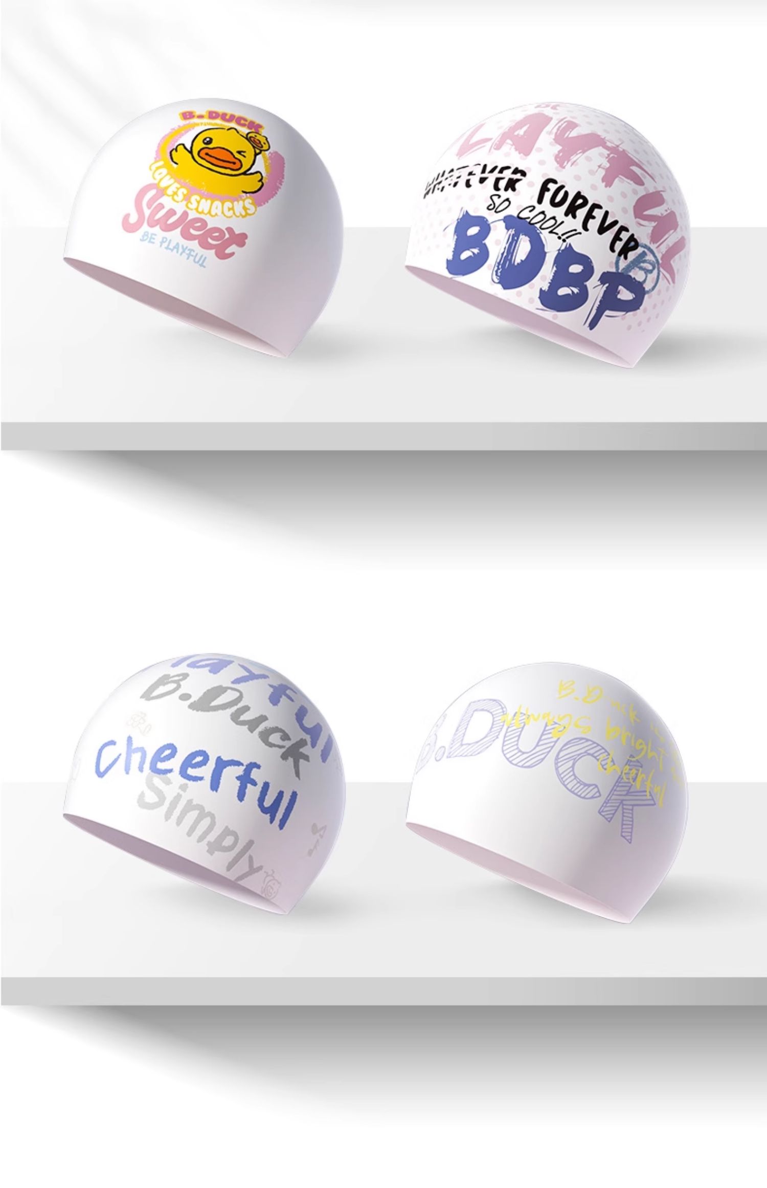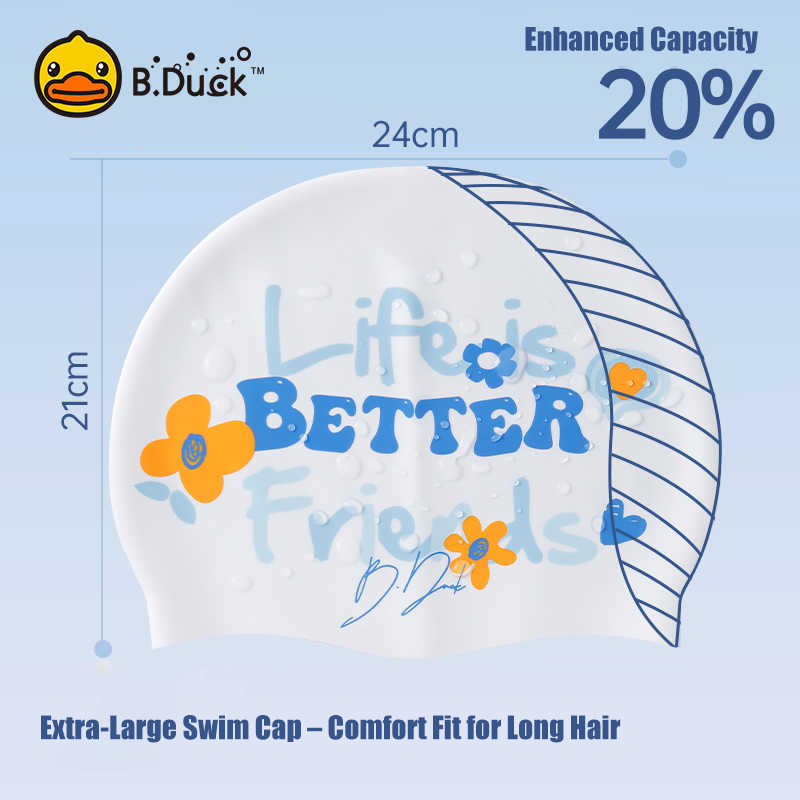 | style: No selection | B.Duck Silicone Swim Cap – Waterproof, Ear Cover, Anti-Chlorine, Stretch Fit for Long Hair & Large Head (Men/Women) |