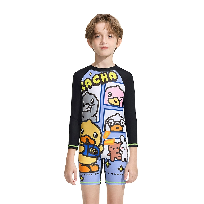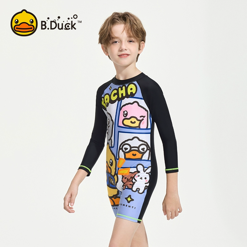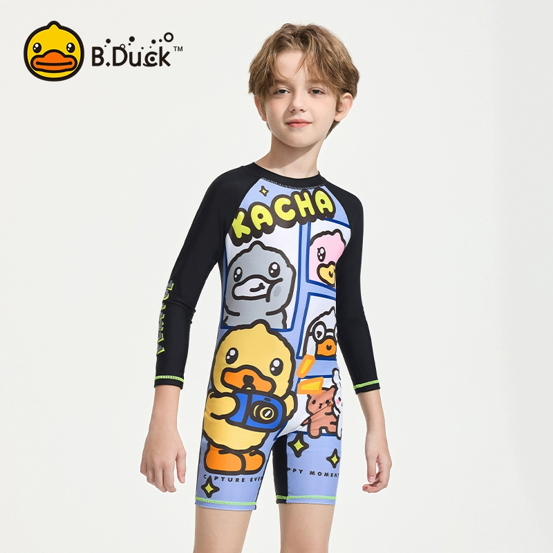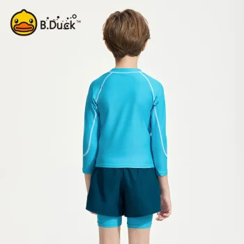 B.Duck Kids' Swimsuit - Boys' One-Piece Long Sleeve & Pants UV Protection Set, New Style for Older Children, Swimming Training Outfit