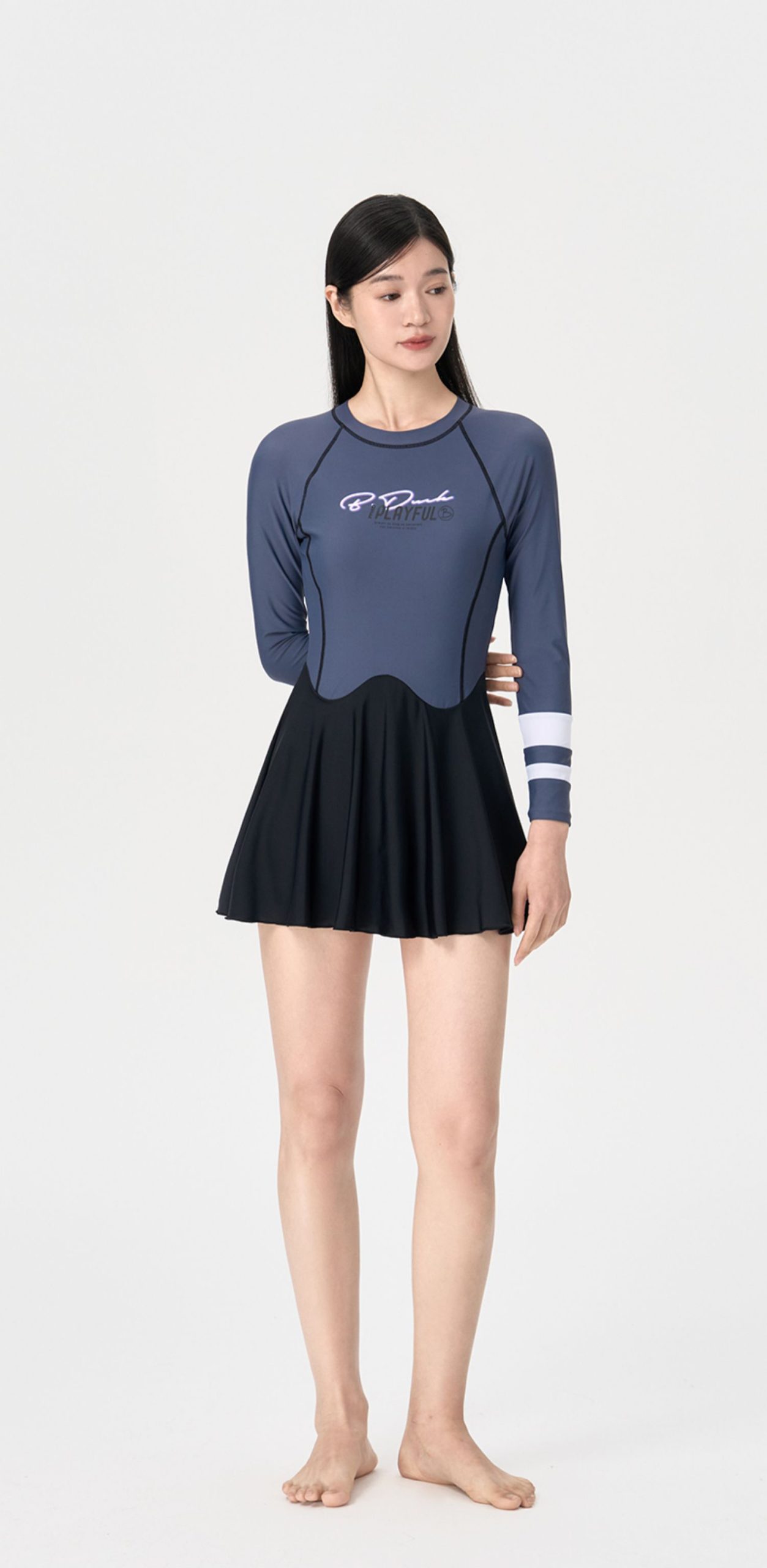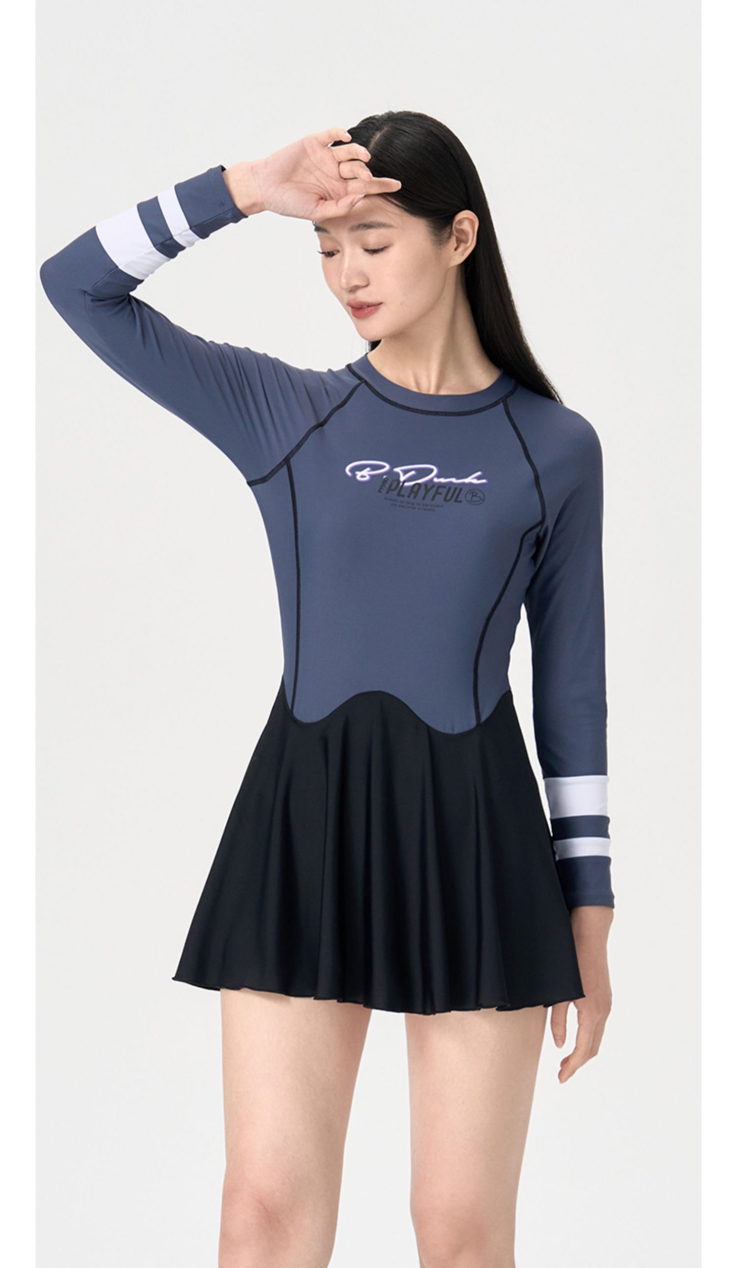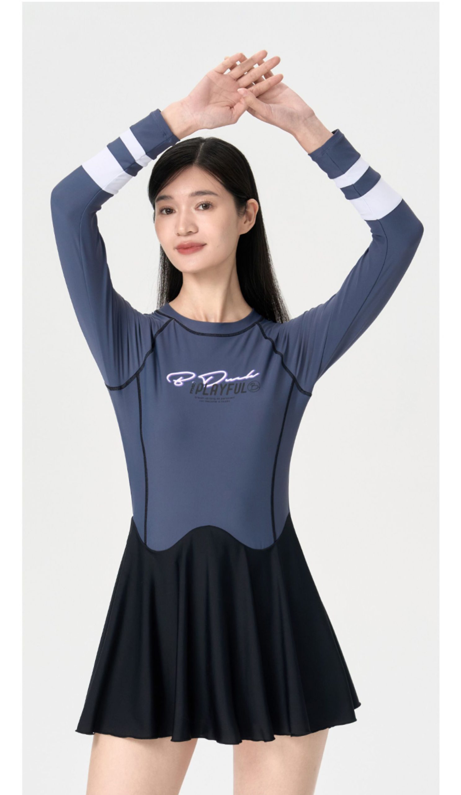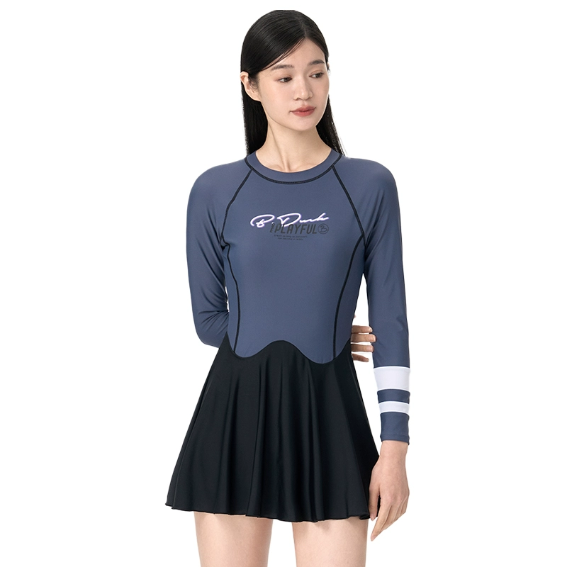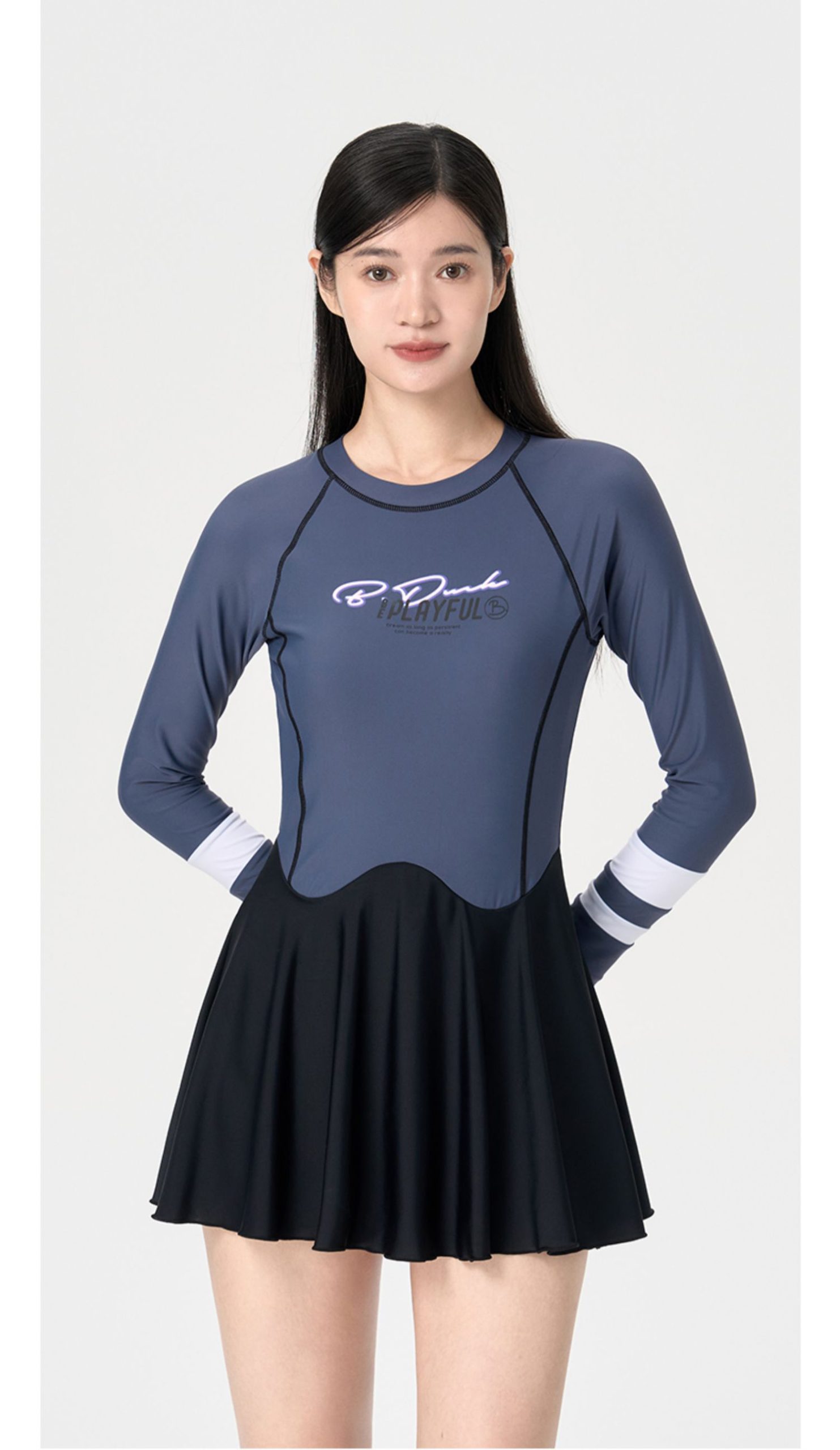 B.Duck Women's 2025 Long-Sleeve Swim Dress: Plus Size UV Protection One-Piece with Skirt Cover, Trendy Modest Beachwear
