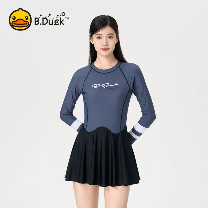 B.Duck Women's 2025 Long-Sleeve Swim Dress: Plus Size UV Protection One-Piece with Skirt Cover | Trendy Modest Beachwear