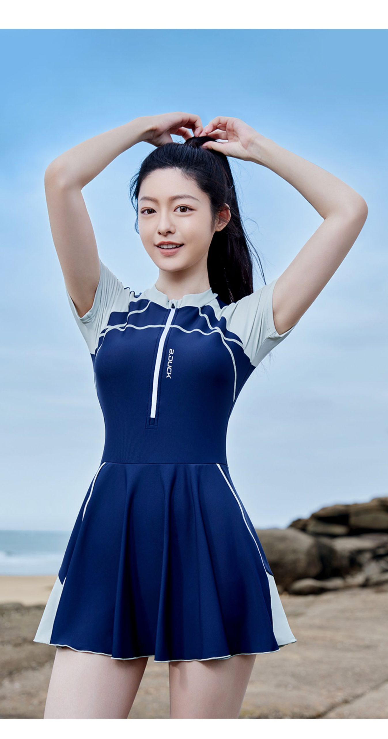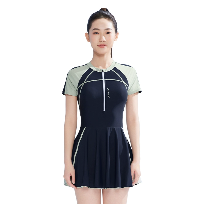 B.Duck Women's 2025 Performance Swimsuit‌Modest Skirted One-Piece | UPF50+ Long Sleeve with Tummy Control for Plus Size