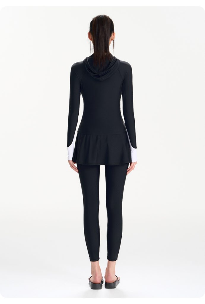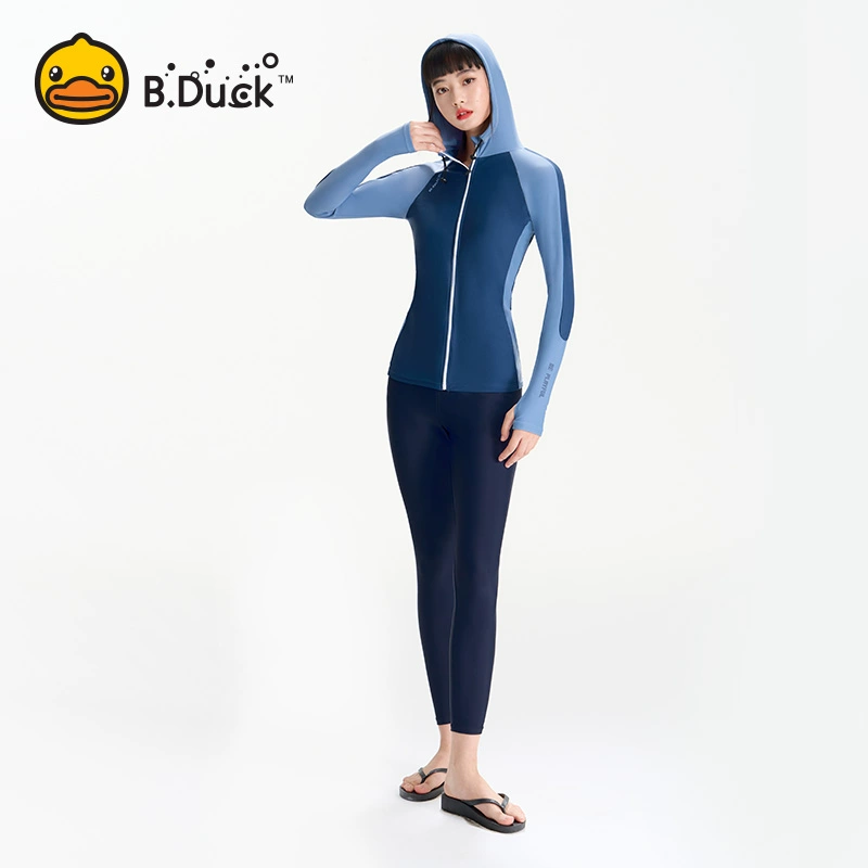 B.Duck Women's Modest Swimwear Set: Long-Sleeve Rash Guard & High-Waisted Bottoms | 2025 New UV Protection Separates for Surfing & Diving