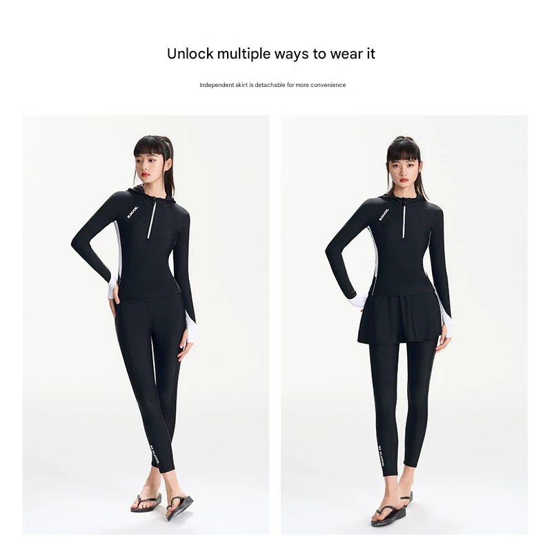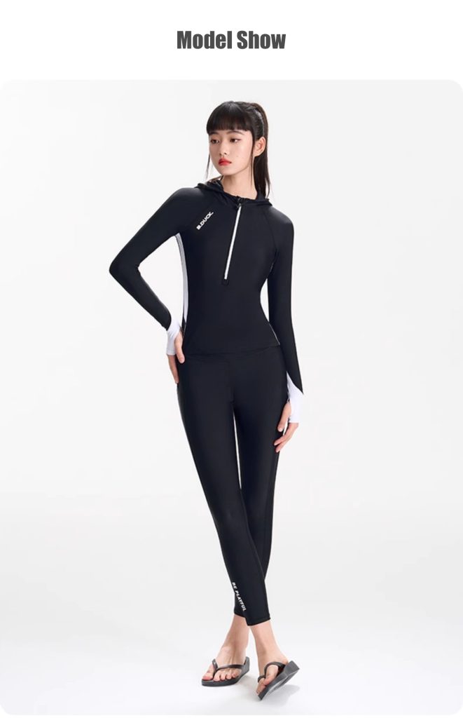 | style: No selection | B.Duck Women's UV Protection Swimwear Set: Long-Sleeve Rash Guard + High-Waisted Bottom, 2025 New Modest Swimwear for Diving & Water Sports |